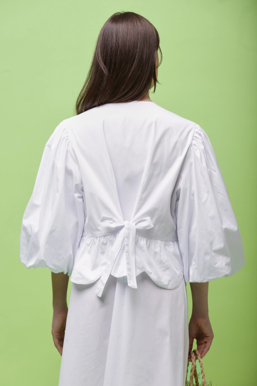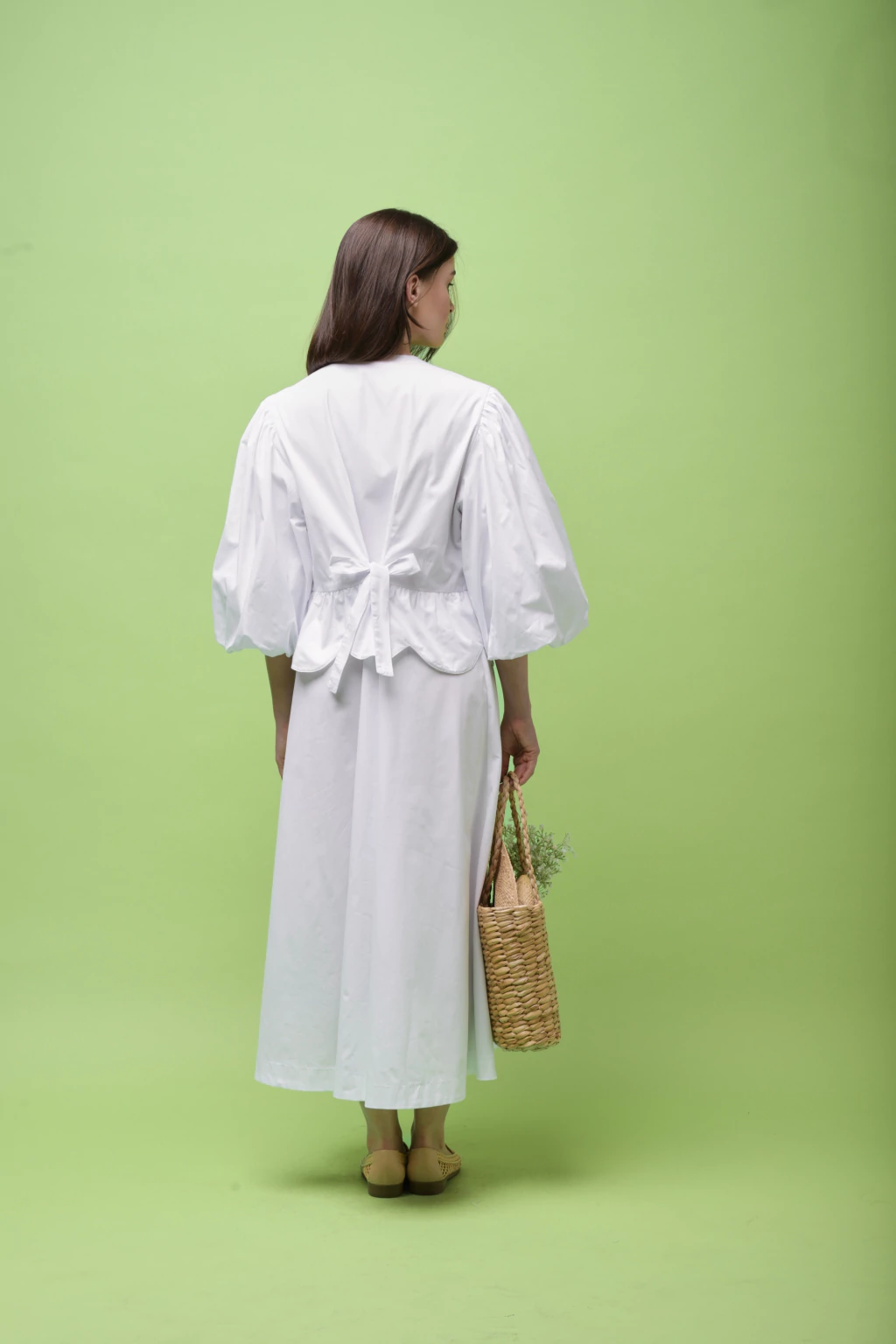 Clássico é cheio de detalhes: Todo 100% algodão, zero transparência, mangas bufantes, comprimento mídi e amarração nas costas para ajustar a cintura!
